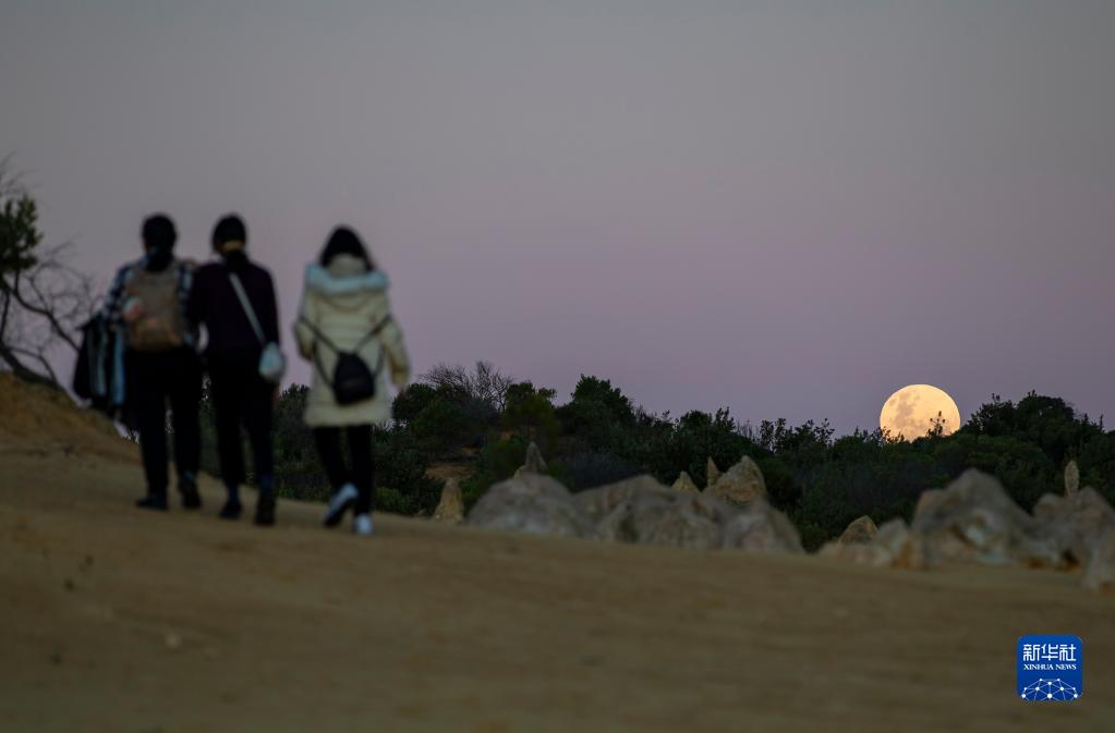 6月14日,人們?cè)谖挥诎拇罄麃單靼拇罄麃喼莸募夥迨囉^(guān)賞“超級(jí)月亮”。