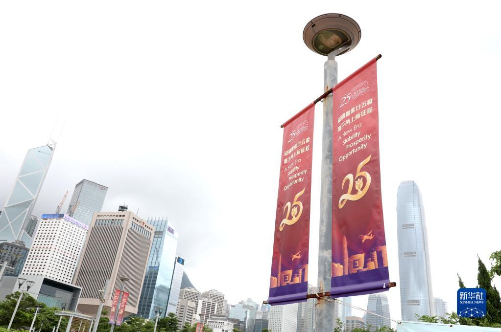 隨著香港回歸祖國25周年紀念日臨近,喜慶的紅色遍布城市的街頭巷尾。