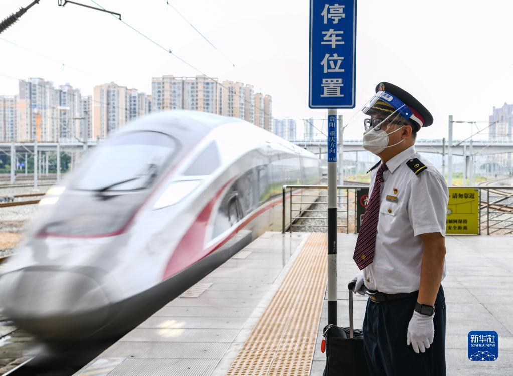 2020年12月24日,司機李治剛按響風笛,駕駛G8608次復興號動車組,由重慶沙坪壩站開往成都東站。時速350公里的復興號動車組,讓兩地間的高鐵通達時間縮短至62分鐘。
