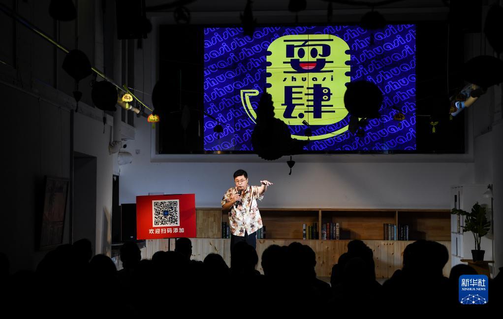 重慶北倉(cāng)文創(chuàng)街區(qū)一小劇場(chǎng)內(nèi),工作人員在表演(6月3日攝)。