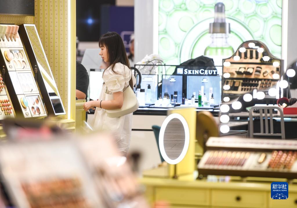 7月3日,消費者在重慶觀音橋商圈一商場內(nèi)選購化妝品。