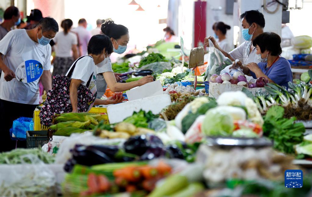 7月7日,市民在西安市未央?yún)^(qū)一農(nóng)貿(mào)市場(chǎng)內(nèi)選購(gòu)蔬菜。
