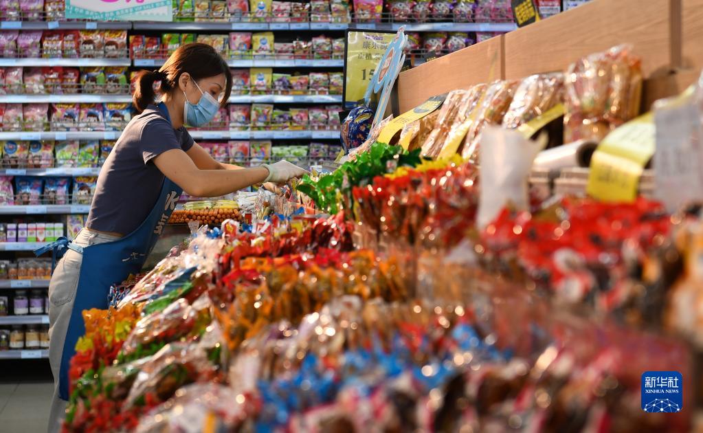 7月6日,西安市解放路一家超市內,店員在整理貨品。