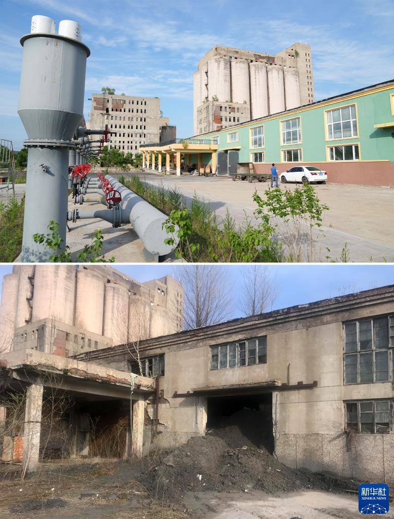 拼版照片:上圖是7月6日拍攝的老廠區一處閑置廢舊建筑改造成的VC·產業園廠房(新華社記者王建威攝);下圖是該閑置廢舊建筑原貌(資料照片)。新華社發