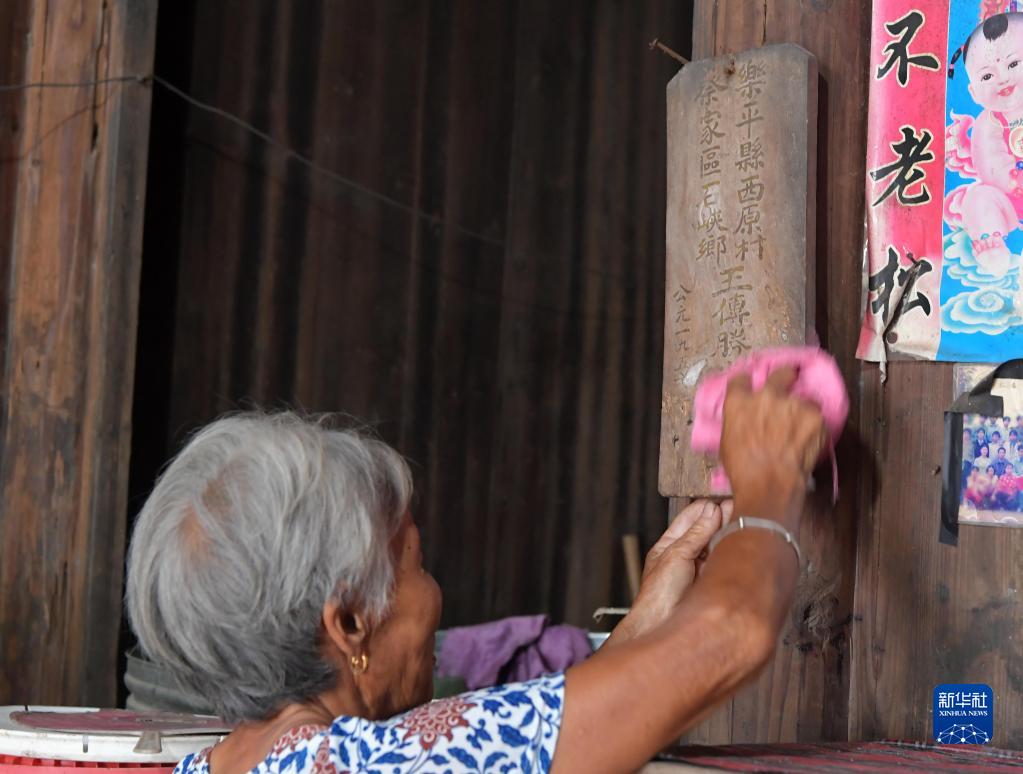 在江西省樂平市,今年85歲的程大妹在家中擦拭抗美援朝犧牲烈士王傳勝的牌位。王傳勝1950年參軍,作為未婚妻的程大妹一直等著他回家完婚,但是卻等來了王傳勝犧牲的消息。多年來,程大妹一直保留著王傳勝犧牲時留下的遺物。2021年,程雪清幫助她找到了位于朝鮮開城的中國人民志愿軍烈士陵園的合葬墓位置(7月6日攝)。