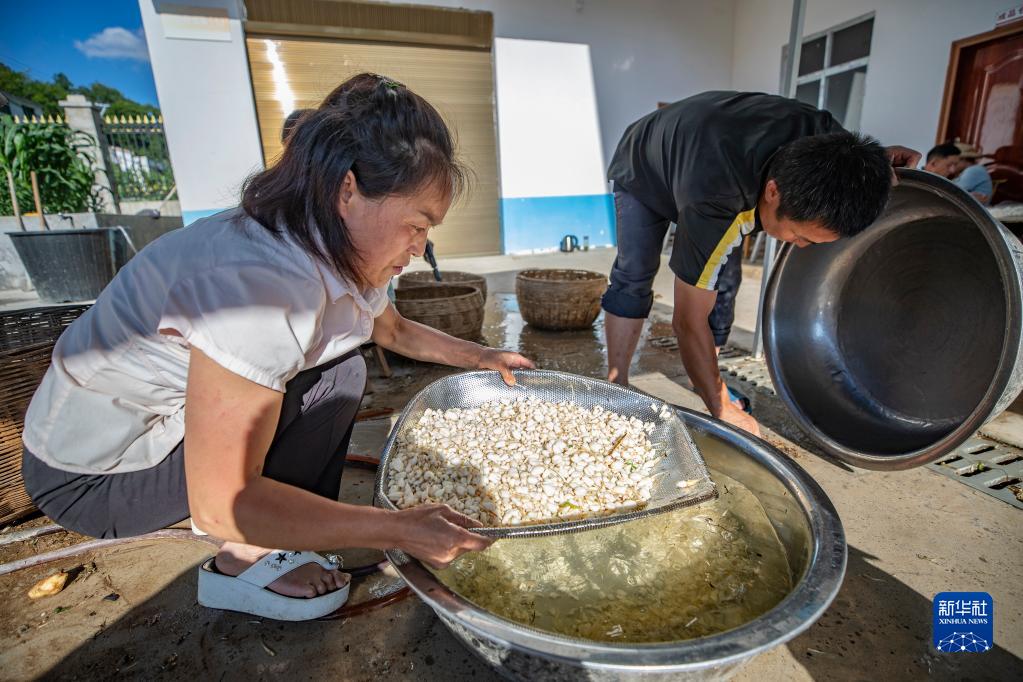 7月14日,在重慶市巫溪縣蘭英鄉(xiāng)西安村,村民在清洗貝母。
