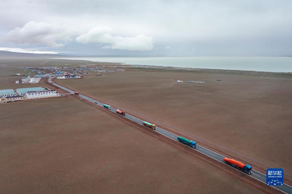 運送家具的貨車從雙湖縣多瑪鄉(xiāng)出發(fā)(7月15日攝,無人機照片)。