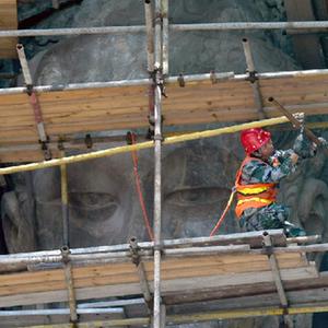 7月21日,固定在奉先寺崖壁上的腳手架及防護網開始有序拆除,洛陽龍門石窟奉先寺大型滲漏水治理和危巖體加固保護工程完工。滲漏水及危巖體一直是威脅龍門石窟文物安全的主要病害。2021年12月,龍門石窟奉先寺啟動大型保護工程,重點對這兩類病害進行修復治理,保障文物和游客安全。