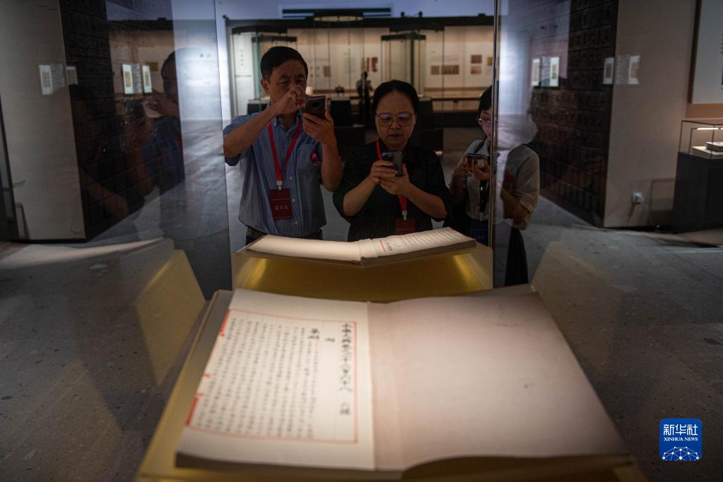 7月30日,觀眾在中國國家版本館杭州分館參觀展品。