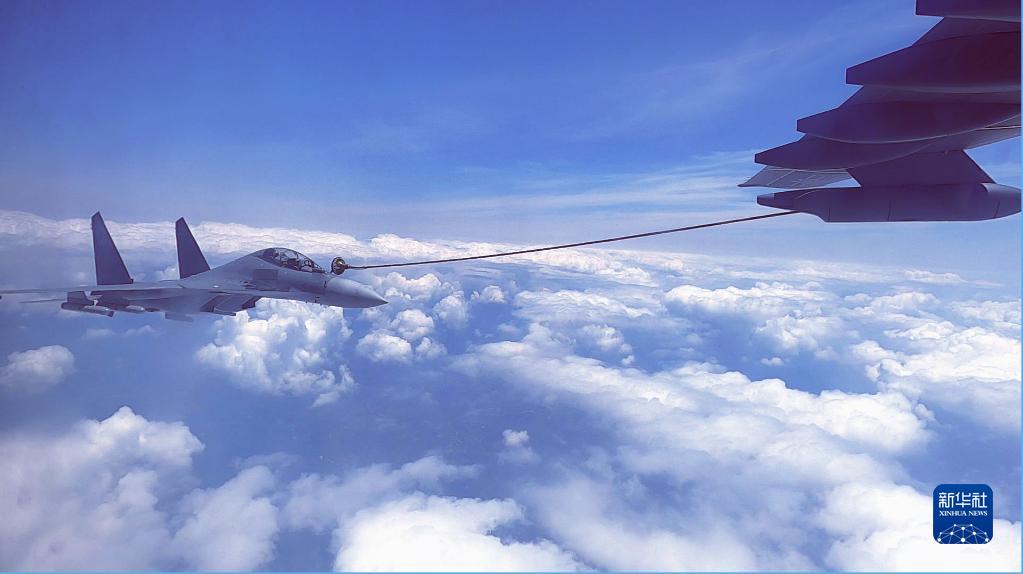 空軍運油-20和殲-16飛機開展海上方向空中加油訓練(資料照片)。