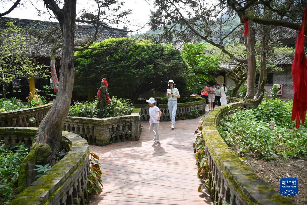 7月31日,游客在留壩縣張良廟景區(qū)內(nèi)游覽。