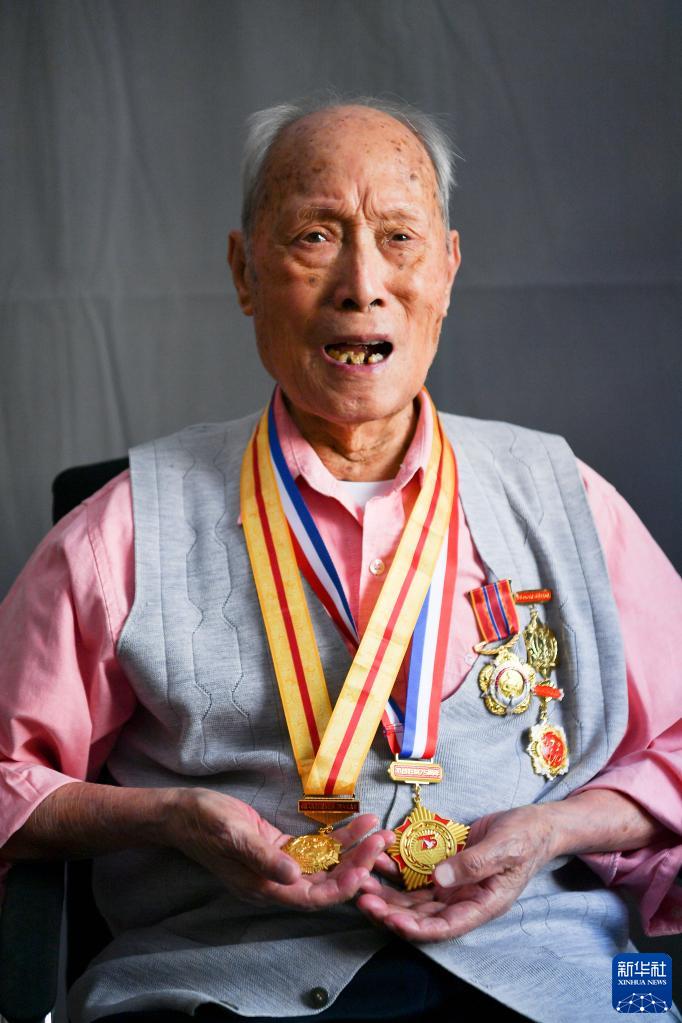 6月13日在陜西省西安市拍攝的抗戰老戰士孫傳聚。