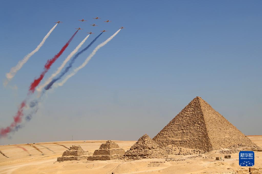 當日,埃及2022金字塔航空表演在吉薩金字塔景區舉行,來自埃及和韓國的多個飛行表演隊伍進行了多項精彩的飛行表演。