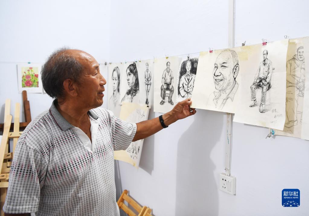 8月3日,在河南省洛陽市嵩縣黃莊鄉三合村,村民張星立展示寫生者為他畫的肖像畫。