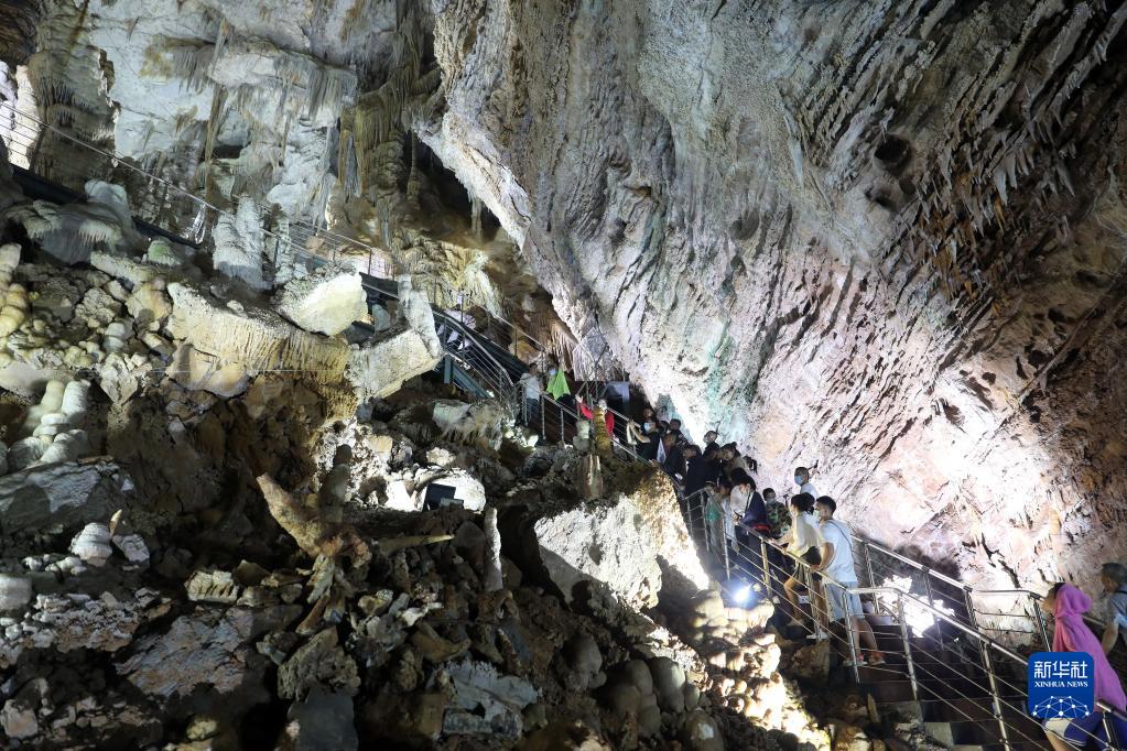 8月3日,游客在興隆溶洞內(nèi)參觀游玩。