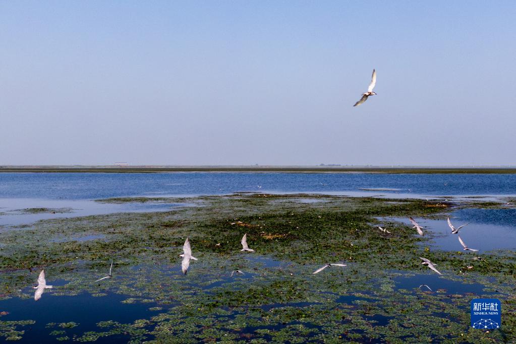 近期,眾多候鳥在湖北省武漢市沉湖生態(tài)自然保護(hù)區(qū)筑巢繁衍。候鳥或迎風(fēng)翱翔,或覓食嬉戲,為這里增添了勃勃生機(jī)。