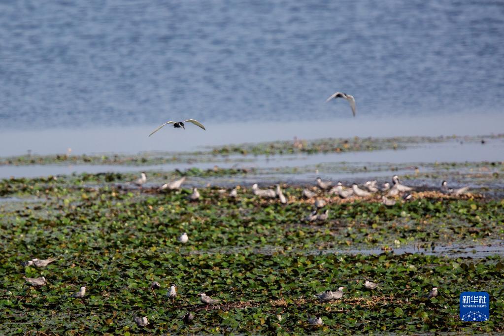 近期,眾多候鳥在湖北省武漢市沉湖生態自然保護區筑巢繁衍。候鳥或迎風翱翔,或覓食嬉戲,為這里增添了勃勃生機。