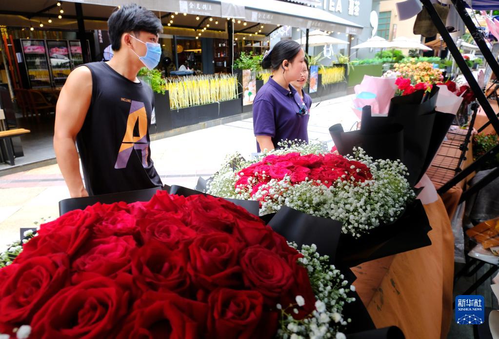 七夕節(jié),鮮花俏銷,花卉市場(chǎng)鮮花銷售升溫。