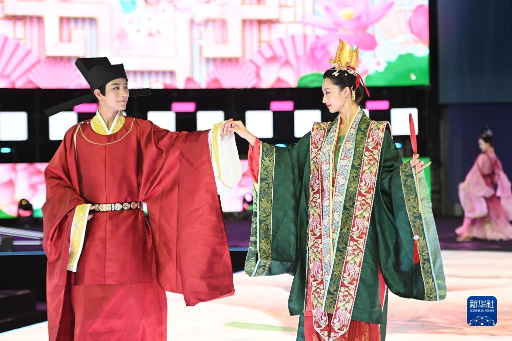 當日,2022杭州仲夏夜——拱墅區“武林衣秀·宋韻杭州”暨武林路女人街開街儀式在武林廣場上演。活動除了走秀,還融入了宋韻元素,呈現宋代風韻。