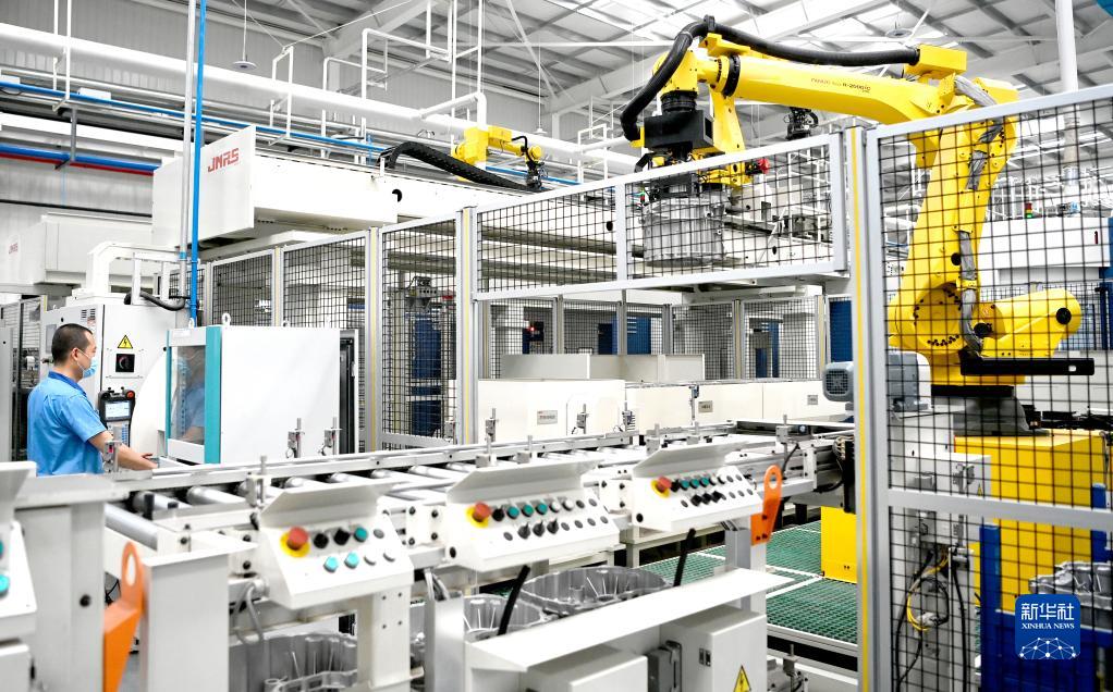 法士特西安高智新公司變速器零件數字化生產線生產現場(2022年4月21日攝)。