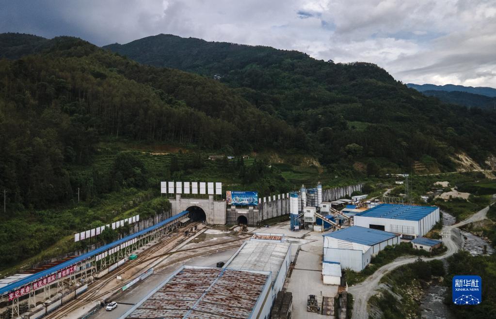 這是建設(shè)中的大瑞鐵路高黎貢山隧道(出口)(8月4日攝,無人機照片)。