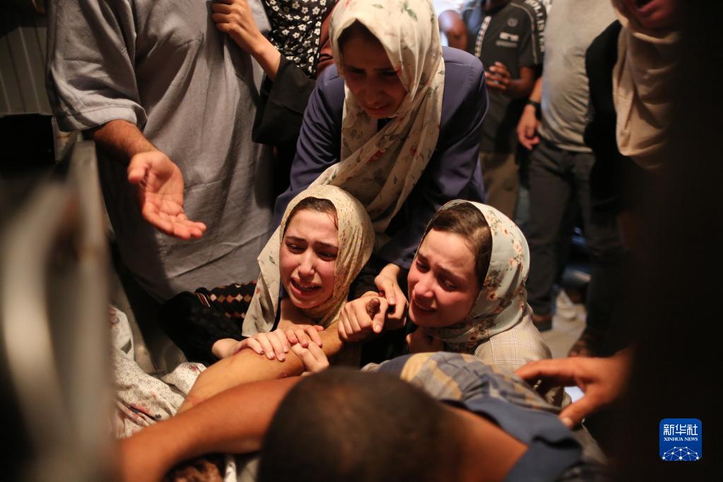 8月5日,空襲遇難者親屬在加沙地帶南部城鎮(zhèn)汗尤尼斯的一所醫(yī)院哭泣。