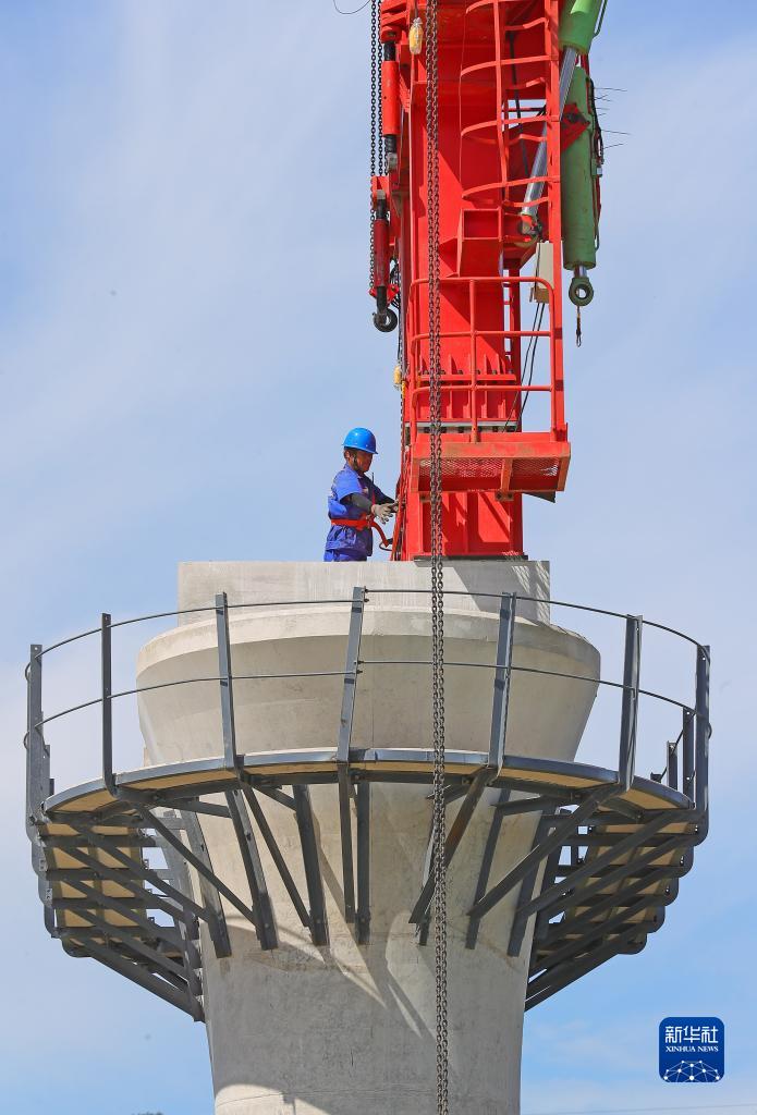8月6日,中鐵九局工程技術人員在箱梁架設現(xiàn)場施工作業(yè)。