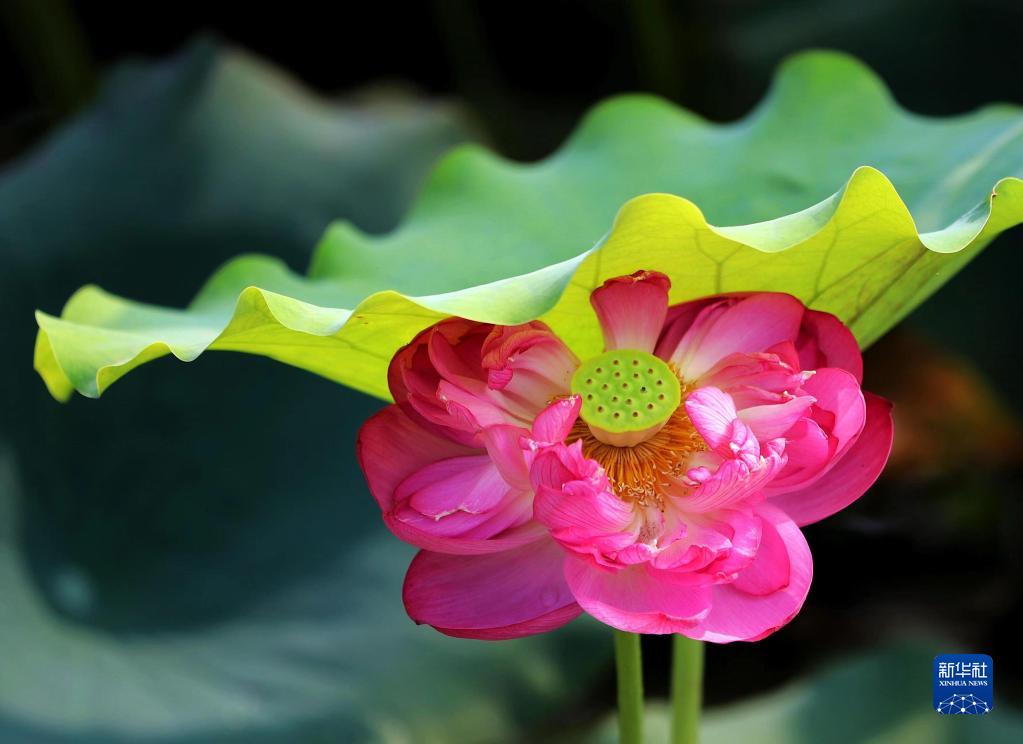 7月31日,在河南省駐馬店市,公園里的荷花依然綻放。