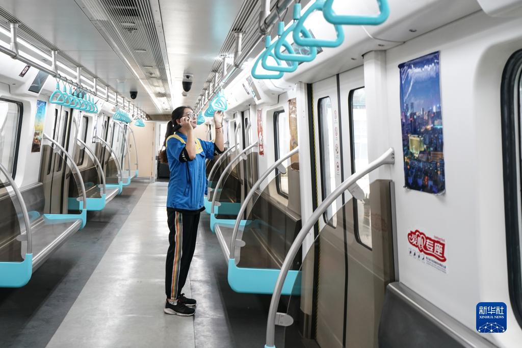 8月6日,從事軌道交通車輛配套產品研發生產的今創集團股份有限公司的工人檢視國內軌道交通項目車廂內飾產品。