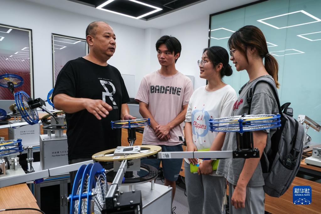8月6日,常州固立高端裝備創(chuàng)新中心的工作人員向參加暑期機(jī)器人夏令營(yíng)的學(xué)生介紹四旋翼飛行仿真器。