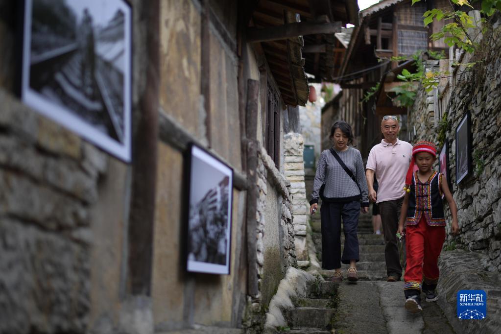 8月6日,人們在貴陽市花溪區石板鎮鎮山村“鎮山國際影像周”影展上觀展。