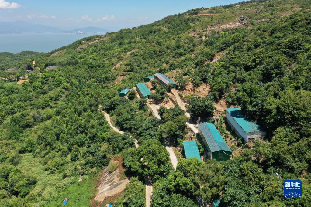 這是位于崳山島上的福鼎市特色農業產業示范基地的山羊養殖場(8月5日攝,無人機照片)。