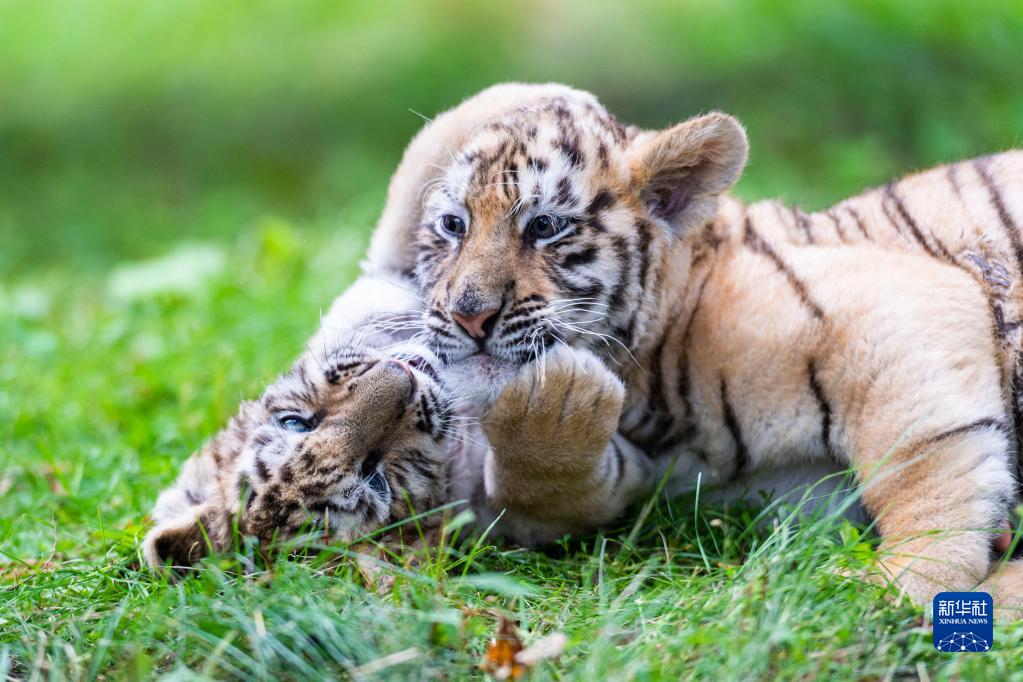 7月29日在橫道河子?xùn)|北虎林園拍攝的東北虎幼虎。7月29日是“全球老虎日”。游客們來到位于黑龍江省海林市的橫道河子?xùn)|北虎林園參觀。