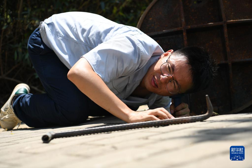 7月15日,張楊在合肥市瑤海區一處路段進行常態化巡檢。今年29歲的張楊是安徽合肥供水集團“雷鋒精神”聽漏隊隊長,帶領著23名隊員,負責全市一萬余公里供水管網檢漏工作。
