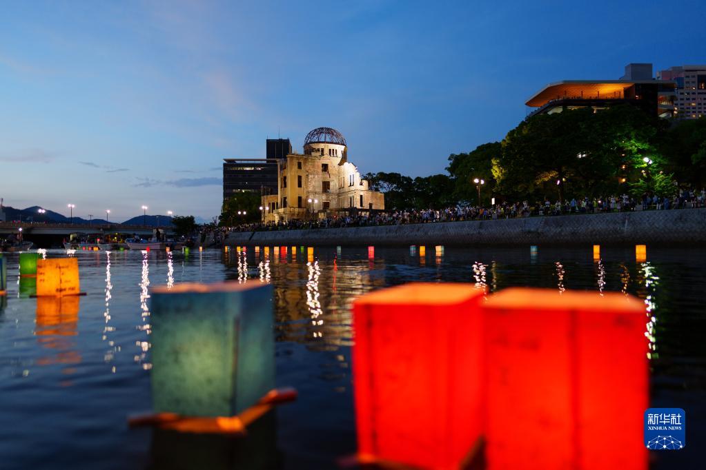 8月6日,在日本廣島和平紀念公園附近的元安川,民眾放河燈祈愿和平。