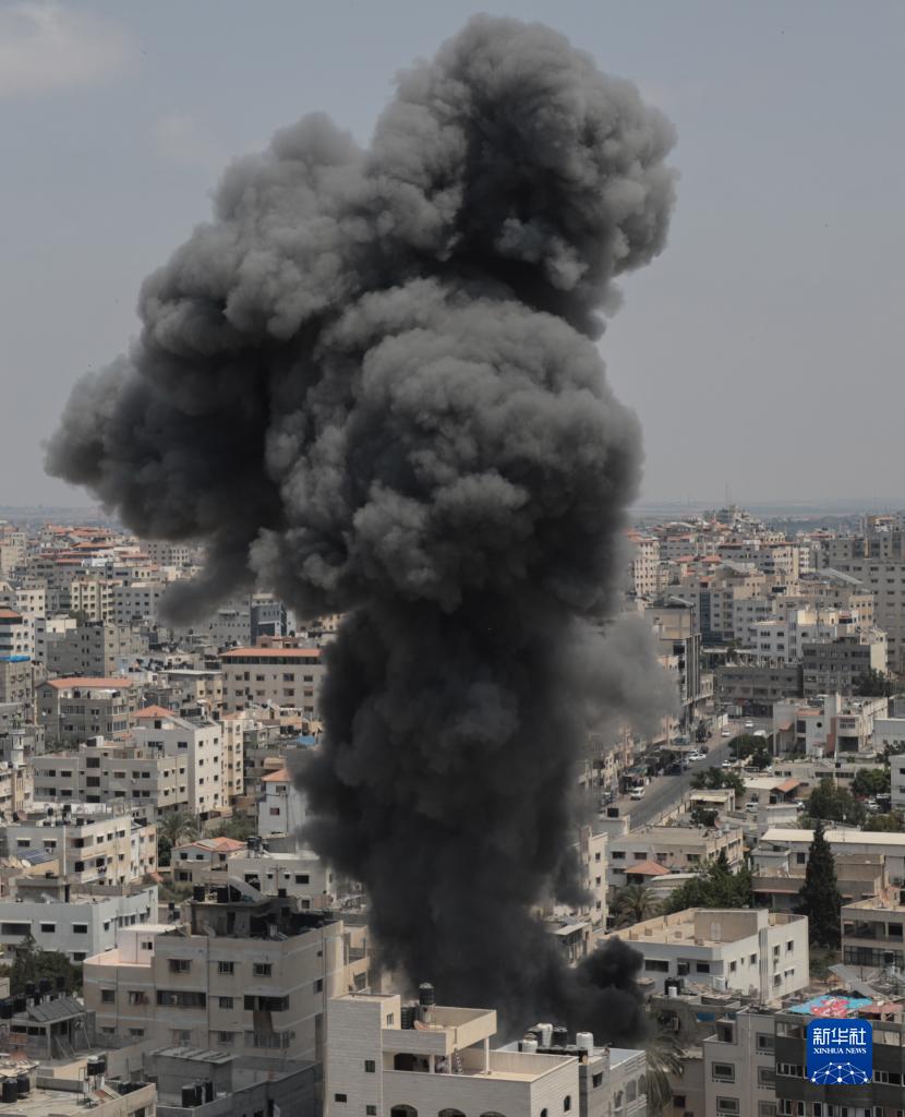 8月6日,加沙城遭遇空襲后升起濃煙。