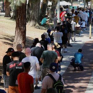 8月6日,人們在美國洛杉磯一處猴痘疫苗接種點排隊。