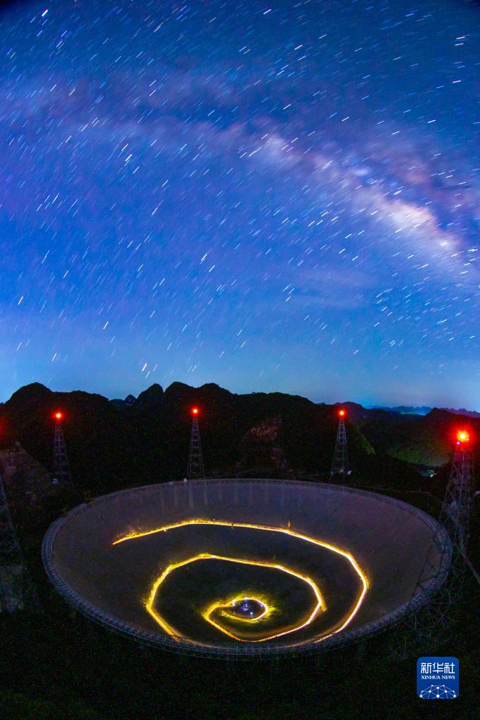“中國天眼”夜景(2022年7月24日維護(hù)保養(yǎng)期間拍攝)。