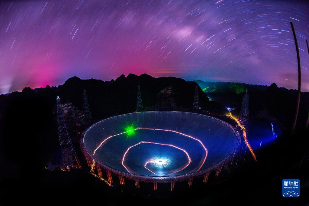 星空下的“中國天眼”(2016年6月27日維護保養期間拍攝)。