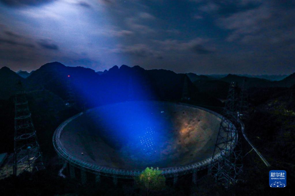 夜幕下的“中國天眼”(2020年1月8日維護保養期間拍攝)。