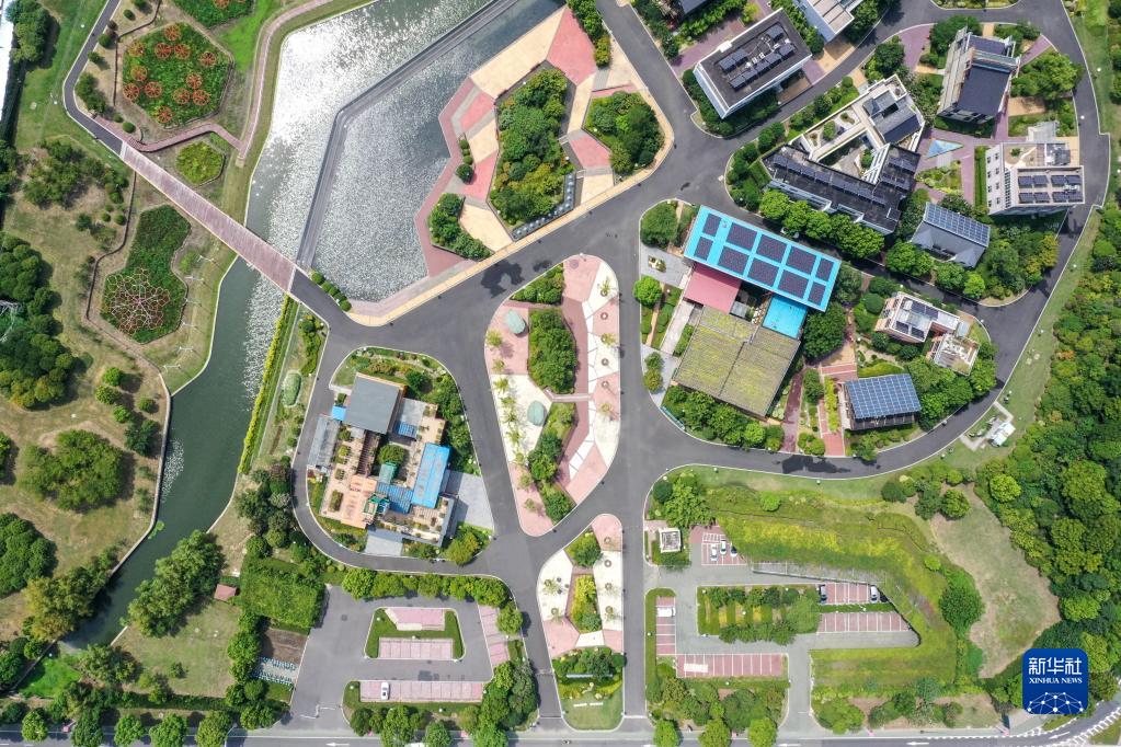 8月7日拍攝的位于武進區(qū)的江蘇省綠色建筑博覽園景色(無人機照片)。