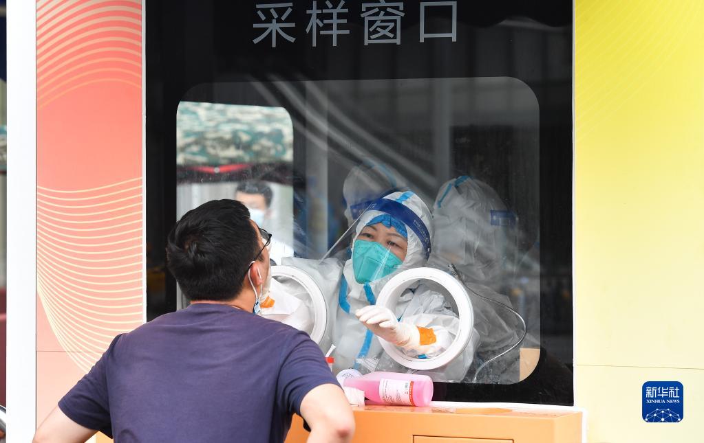8月7日,居民在海口市龍華區萬象城采樣點進行核酸檢測。