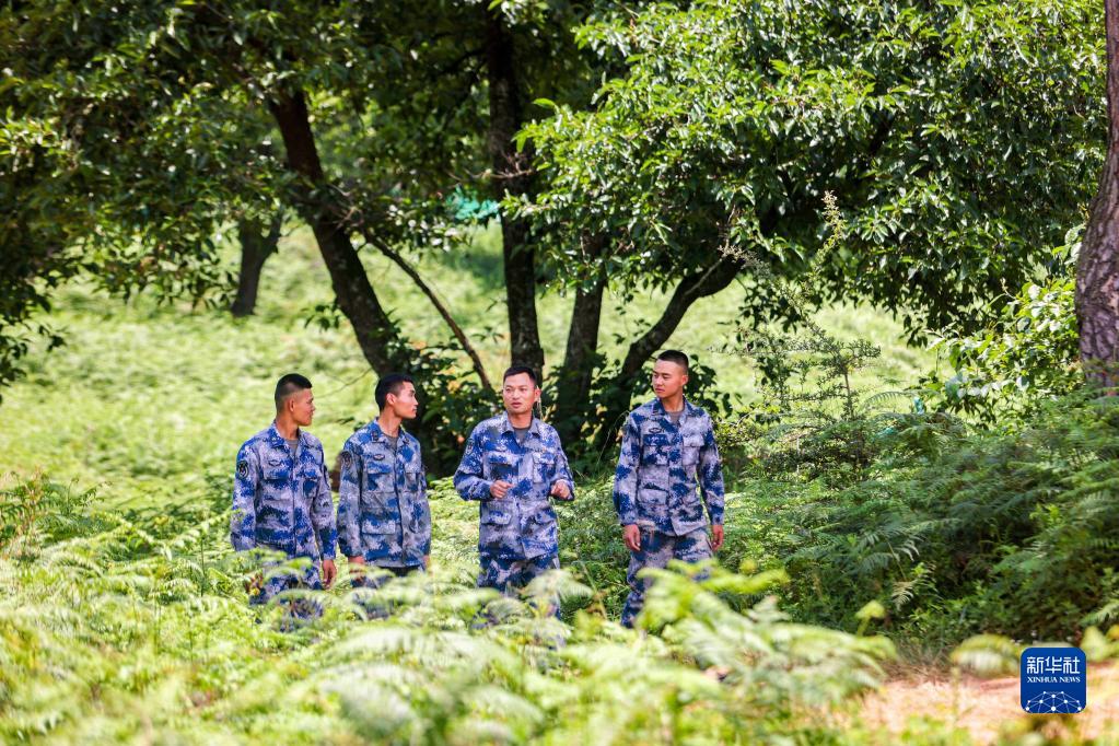 空降兵某旅二營政治教導員余海龍(右二)和戰士談心(2022年7月11日攝)。新華社發(張朋倍 攝)
