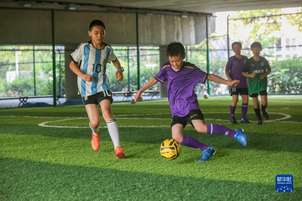 8月8日,小學生們在南京市六合區雄州街道進行足球比賽。