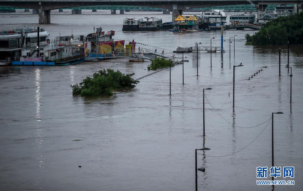 這是8月9日在韓國首爾拍攝的被水淹沒的汝矣島漢江公園。