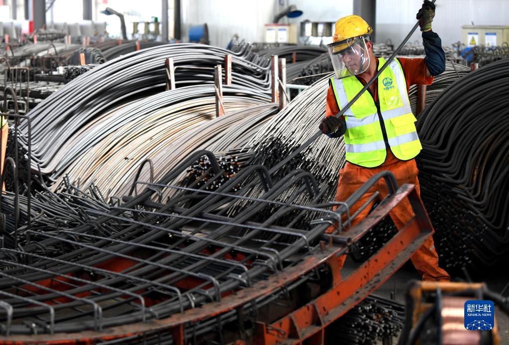 8月9日,工人在中鐵四局安徽智能制造有限公司盾構管片制造基地忙碌。