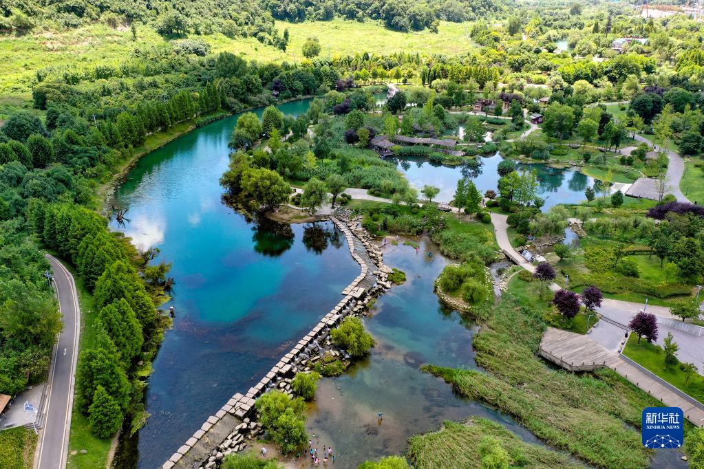 8月9日拍攝的花溪國家城市濕地公園十里河灘景區風光(無人機照片)。