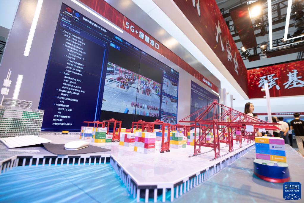 8月9日在中國聯合網絡通信集團有限公司展區拍攝的5G+智慧港口。