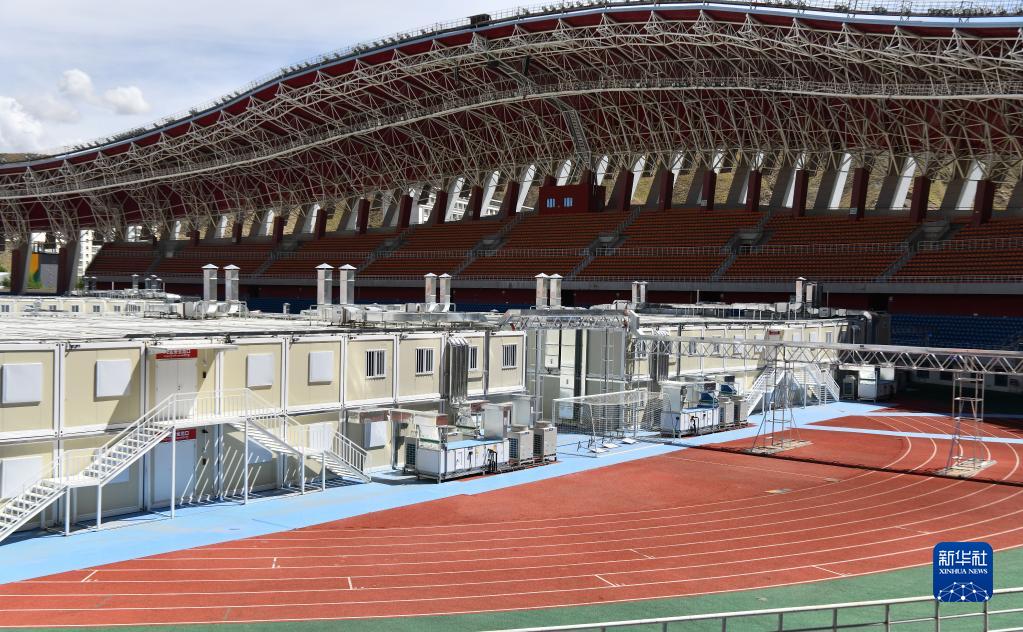 位于拉薩市柳梧新區拉薩市群眾文化體育中心內的方艙醫院(8月9日攝)。