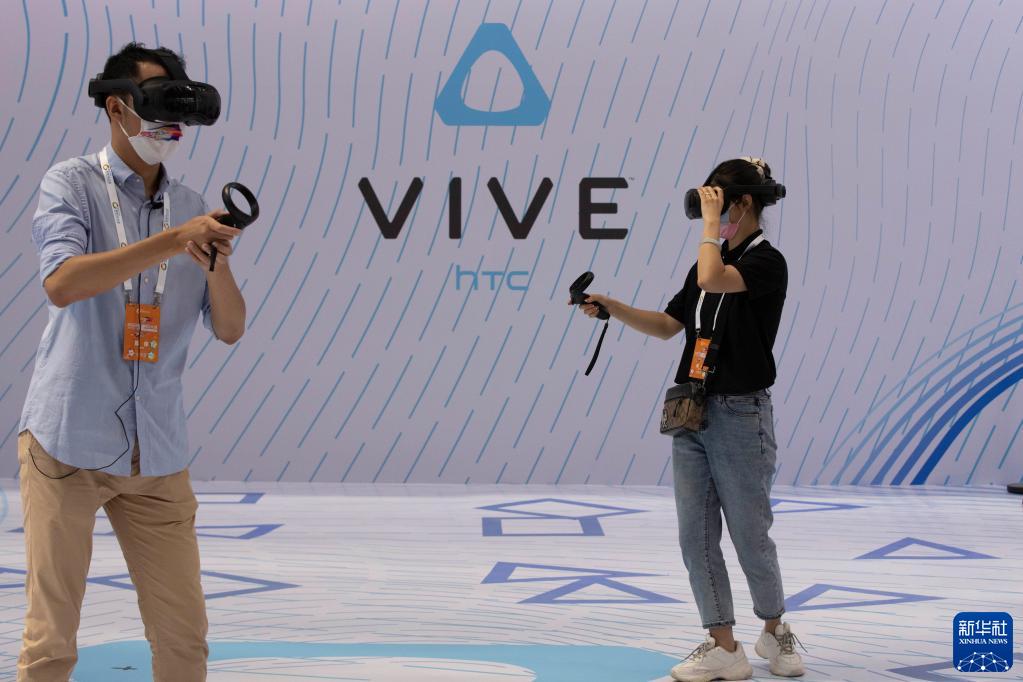 8月10日,人們在2022世界5G大會展廳里體驗5G網絡支持下的VR設備。